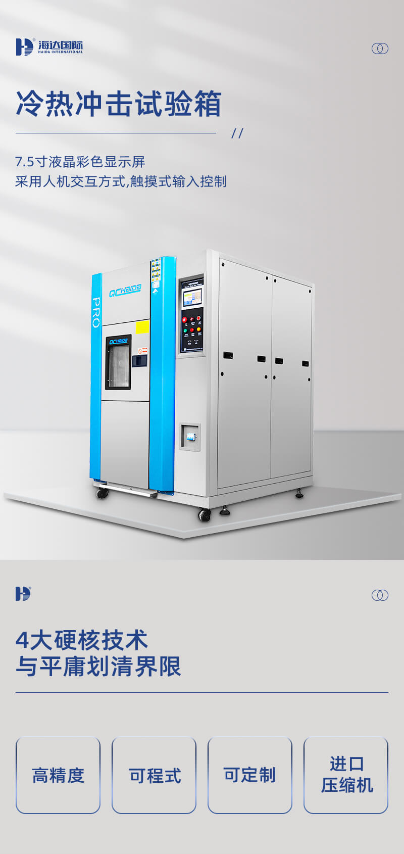 可程式冷熱沖擊試驗機(三箱式)是航空、汽車、家電、科研等領域必備的測試設備,考核和確定電工、電子、汽車電器、材料等產品,在進行高低溫試驗的溫度環境沖擊變化后的參數及性能,使用的適應性,適用于學校,工廠,軍工,研位,等單位。