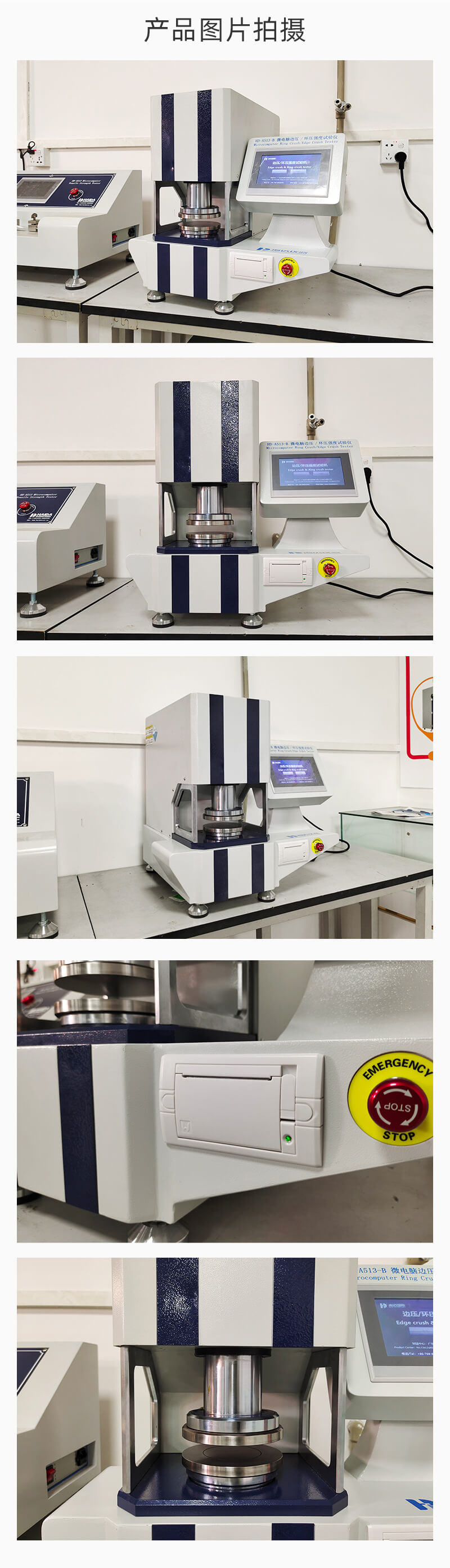 觸屏款邊壓/環(huán)壓強(qiáng)度試驗(yàn)儀可配合多種紙張包裝材料來進(jìn)行多種紙張質(zhì)量測(cè)試,如環(huán)壓(RCT)、平壓(FCT)、邊壓(ECT)、粘合(PAT)多種測(cè)試,是結(jié)合多項(xiàng)功能于一體的測(cè)試設(shè)備。